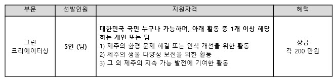 을 기리고자 다음과 같이 수상 후보자를 모집합니다. 각 분야에서 제주의 지속 가능성을 실현하기 위해